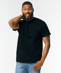 Classic fit. Seamless non-topstitched 2.22cm collar. Taped neck and shoulders. 2.22 cm double needle sleeve and bottom hems. Quarter-turned to eliminate centre crease. Tear-away label.