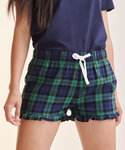 Woven tartan shorts with frill hem. Full elasticated waist with contrast mock drawcord. Tear-out label.